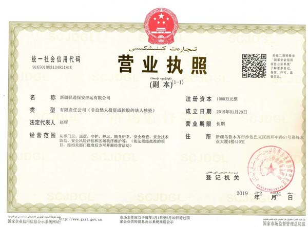 新疆驛通營業(yè)執(zhí)照